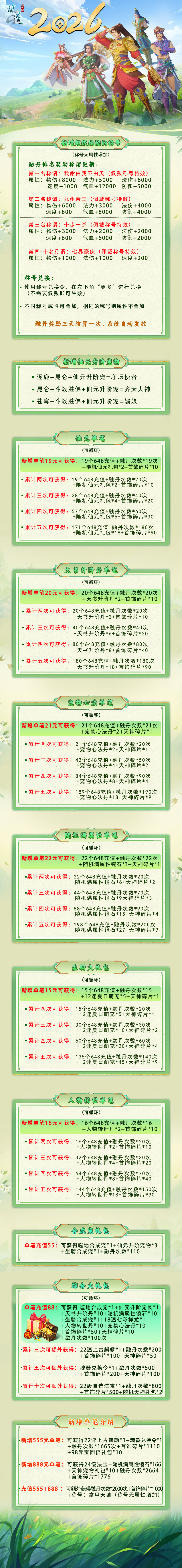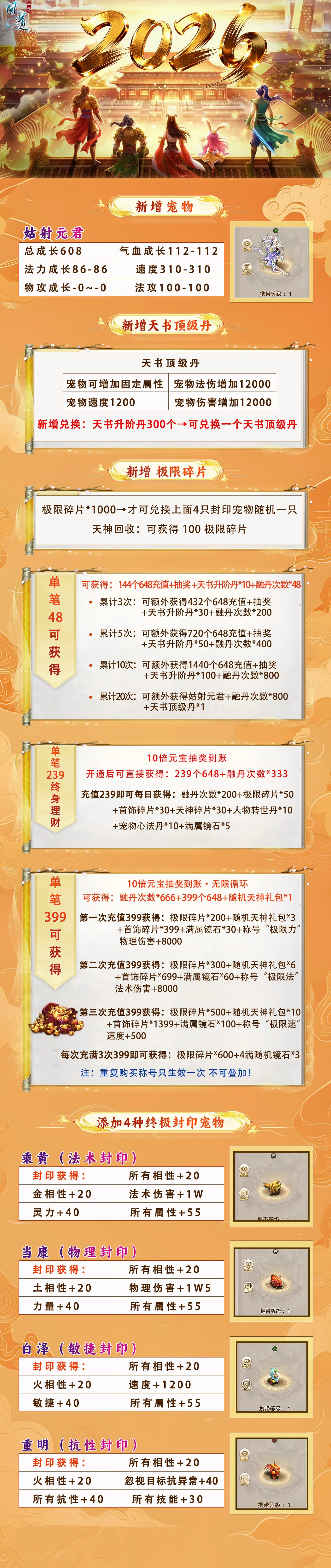 首冲大礼包:6速北极熊+10级士混元金斗+随机魂器1十通天令牌1十变异酷酷龙——————————
