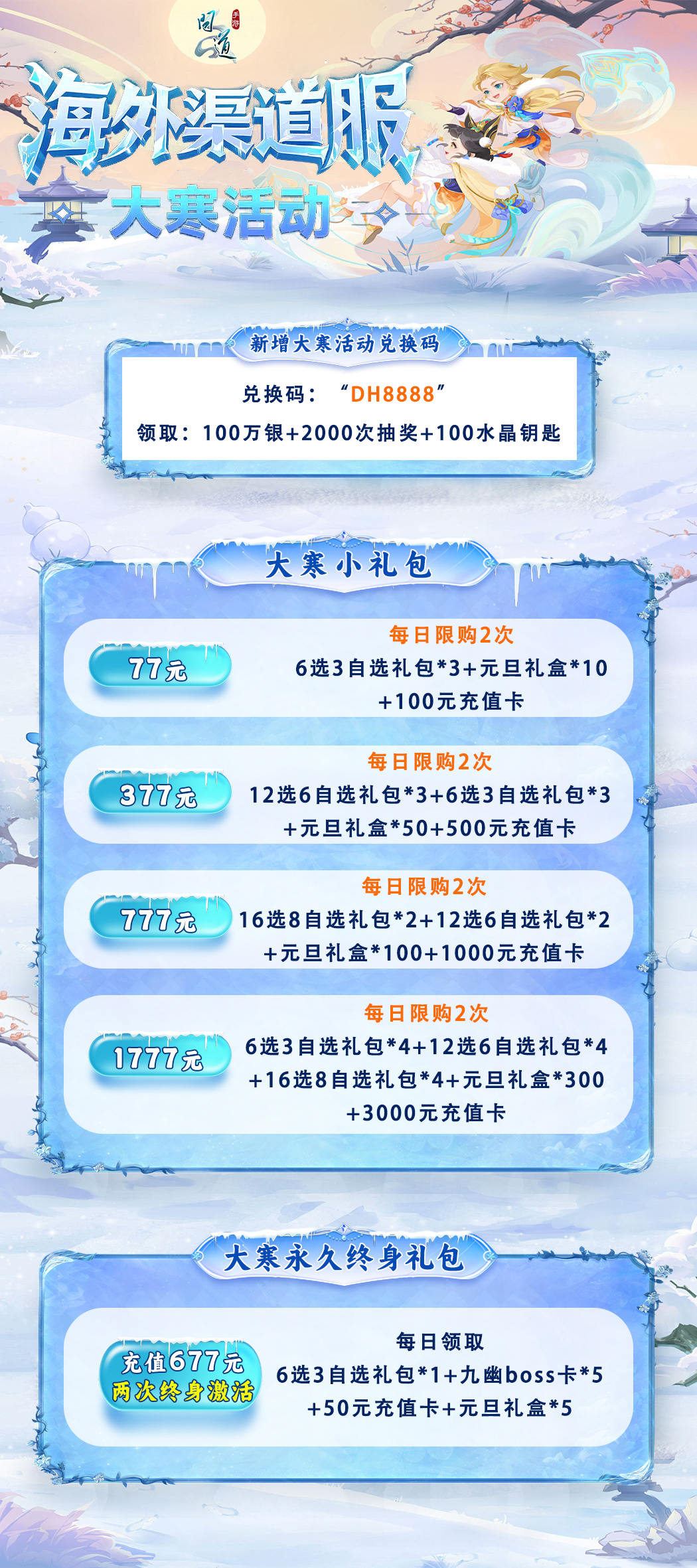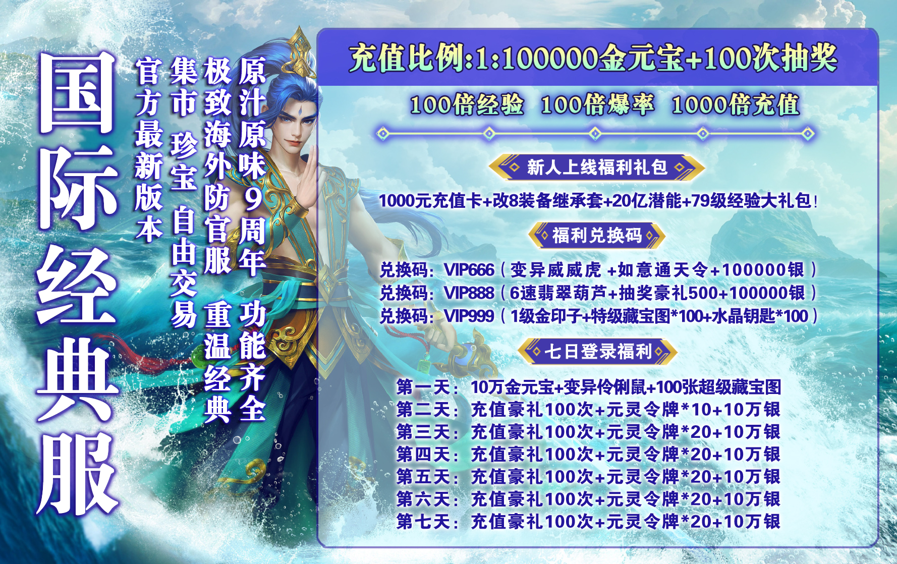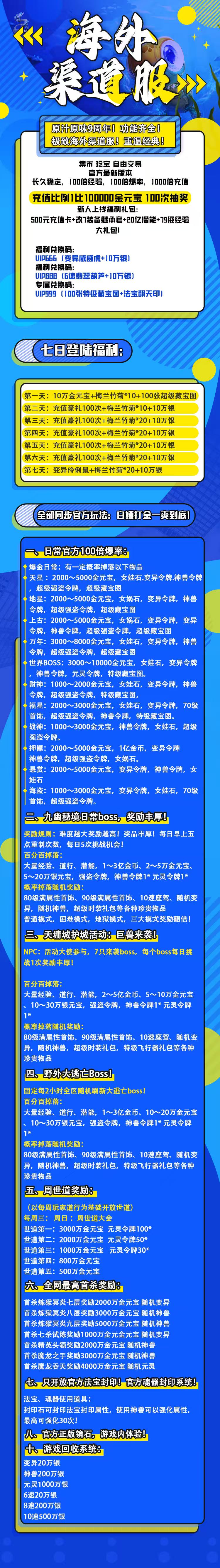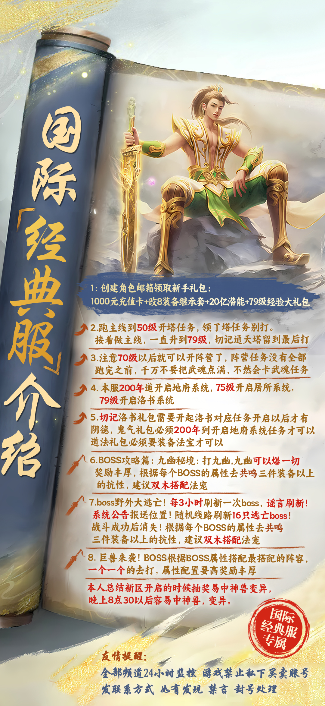 福新手上线福利礼包:1000充值卡改8装备继承套20亿潜能79级经验大礼包